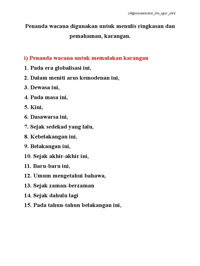 I) penanda wacana untuk memulakan karangan 1. Aidil 20 june 2016 at 06:28.